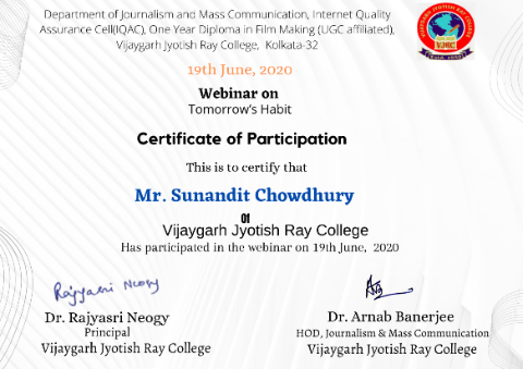 Description of the webinar - On the collaboration of Vigyan Prasar, Creative Science Club Kolkata and dept. of JMC, VJRC this webinar was arranged.