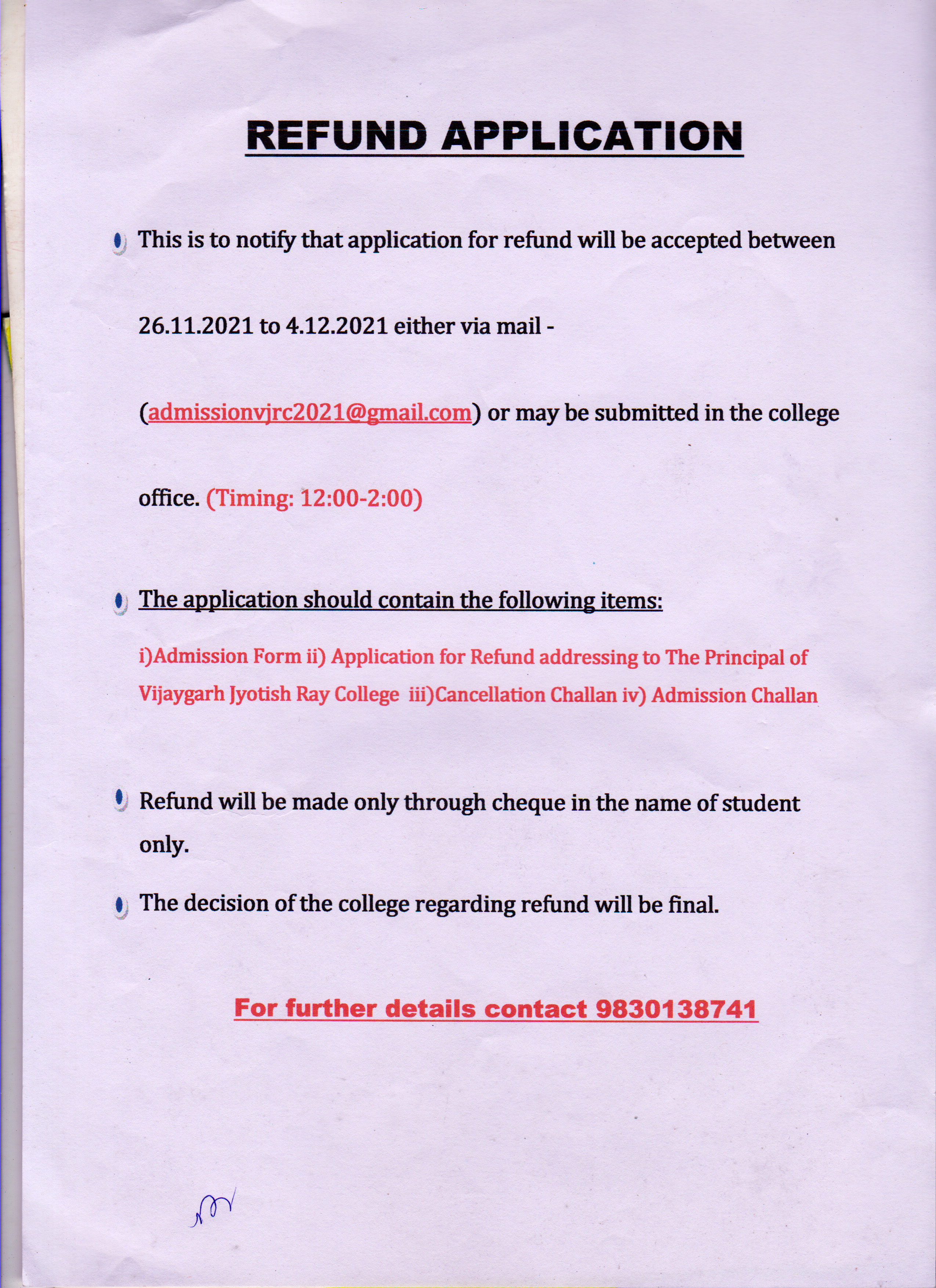 Dr Rajyashri Neogy(Principal) or Prof Mainak Saibya (Convenor, Anti Ragging Committee)