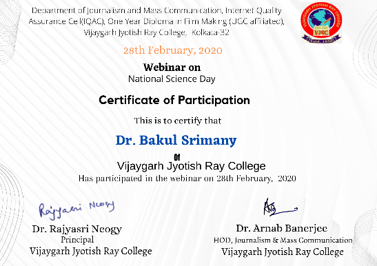Description of the seminar - This seminar was organized by Birla Industrial & Technological Museum in Collaboration with The Science Association of Bengal & dept. of JMC, Vijaygarh Jyotish Ray College.