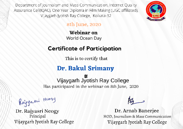 Description of the webinar - Students of the dept. of JMC,VJRC attained this webinar which was arranged on the occasion of World Ocean Day.