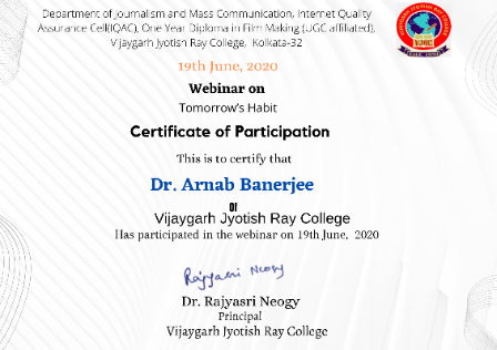 Description of the webinar - On the collaboration of Vigyan Prasar, Creative Science Club Kolkata and dept. of JMC, VJRC this webinar was arranged.
