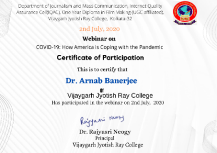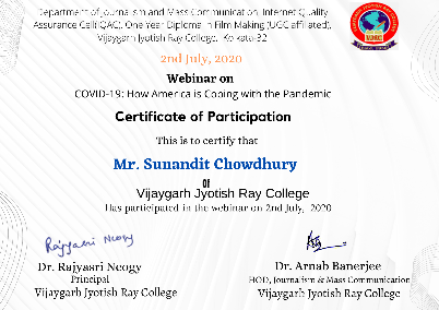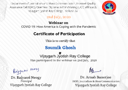 Description of the webinar - Dept. of JMC, VJRC arranged this international webinar in collaboration with India Blooms. The students of the dept. attained this webinar.