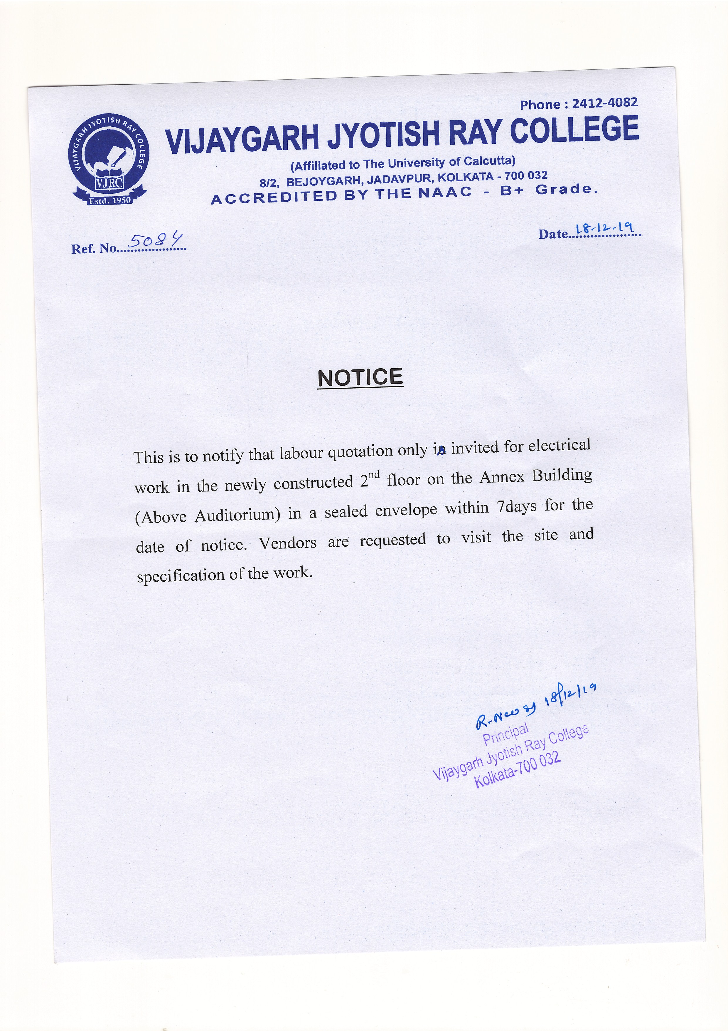 Vijaygarh Jyotish Ray College invites etender 04 Mar, 2020